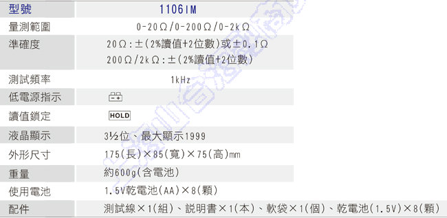 20 Ohm : +/- 2% rdg +/- 2 dgt or +/- 0.1 Ohm which is greater