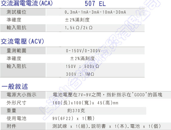 506 EL and 507 EL are special purpose AC milliammeter designed to measure hazardous leakage current from electrical appliances and other power line operated equipment.