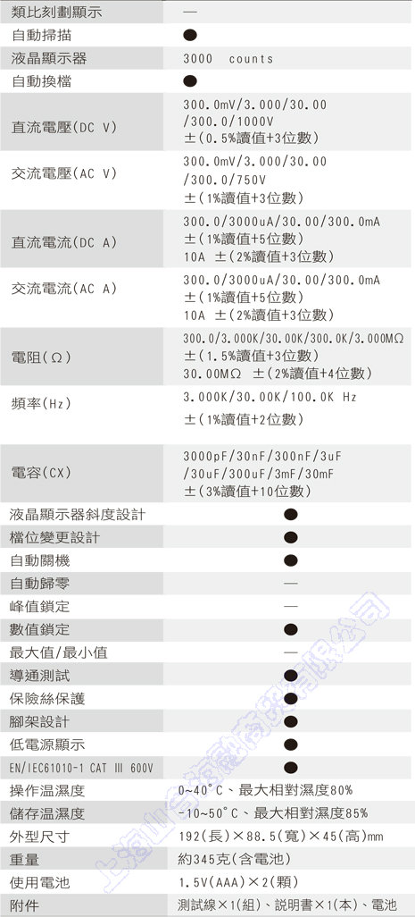 AC/DC voltage, current auto scanning. |