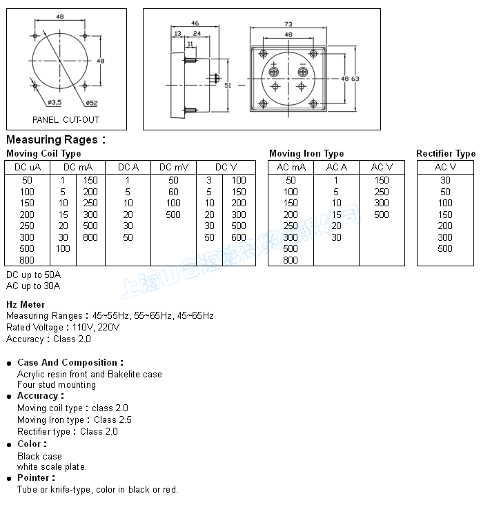 | 動圈軸心式 :2.0 級 / 鐵片型 : 2.5 級 / 動圈式整流型 :2.0 級 |