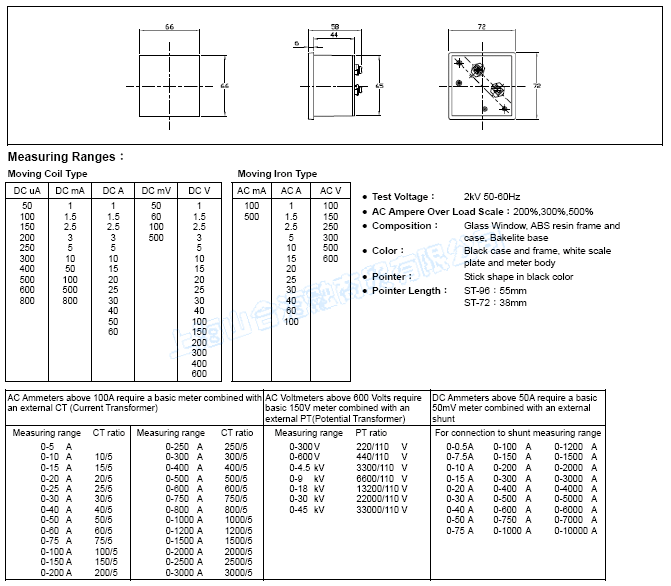 --ST-72 Meter Panel Meters Switchboard Type