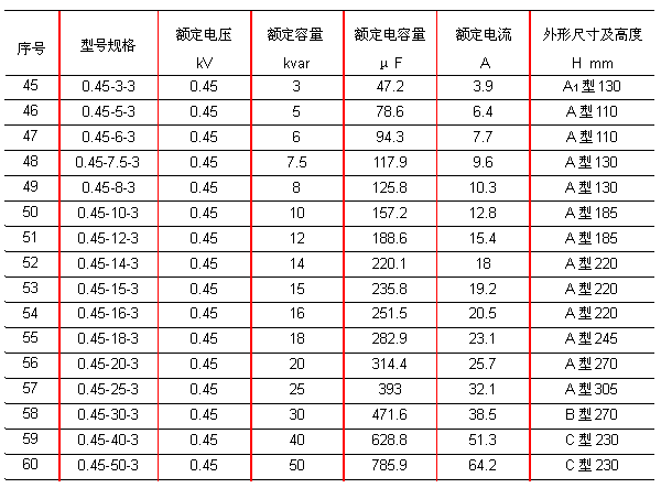 2、额定容量:1~60kvar;