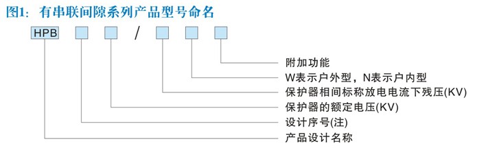 1、产品设计名称HPB表示复合外套组合式过电压保护器