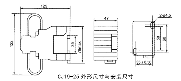 4、接触器安装可用螺钉紧固,也可扣装在35mm或75mm的标准安装轨道上。 |