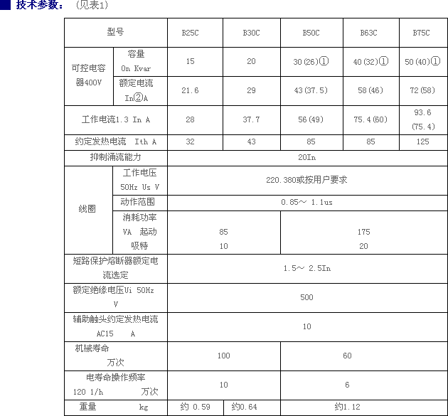 B系列切换电容接触器