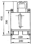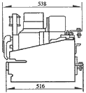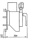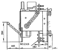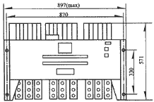 3.2 DW15-1000、1600、2500、4000万能式断路器 该断路器为立体布置形式,触头系统、操作机构均安装在铁制框架上。上部装有灭弧系统,右面装有操作机构。有“通”,“断”指示及手动“合”,“分”按钮。左侧面装有分励脱扣器、欠电压脱扣器。速饱和电流互感器或电流电压变换器套在下母线上。欠电压延时装置、热继电器或半导体脱扣器均可分别装在下方。