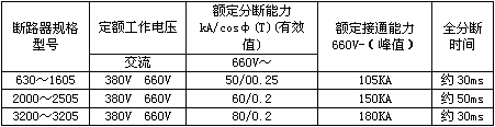 2 断路器的通断能力:本系列断路器通断能力按要求,当电源为