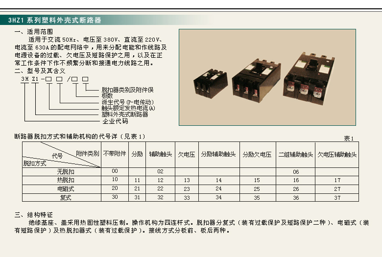 → 3HZ1(DZ10)系列塑料外壳式断路器