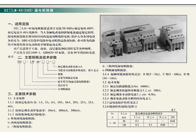DZ□LM-40(C60)漏电断路器