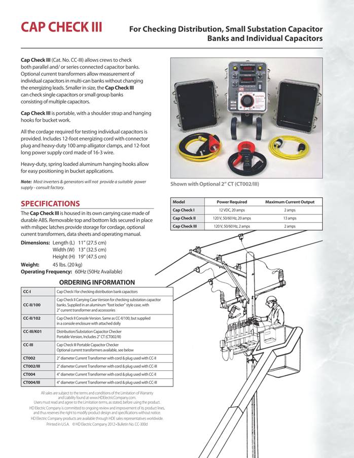Capacitor Tester Features · Quick and easy-to-use · Allows user to eliminate unnecessary replacement through proper testing · Tests individual or banks of capacitors · Prevents costly clean-ups HD Electric Company is committed to ongoing review and improvement of its product lines, and thus reserves the right to modify product design and specifications without notice.
