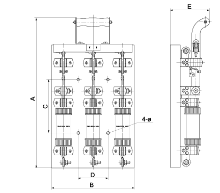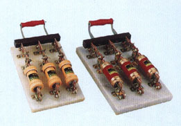| 石板闸主要由底板、触头、熔断体及手柄等组成,本开关部件少,结构简单,更换熔断体也比较方便。 |