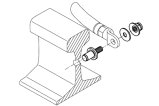 13.5mm具有锥度的不锈钢衬筒,包含有锥度孔以及接触钢轨的翼缘. -一个具有M10螺牙以及锥度的不锈钢螺杆. -一个防松动的M10螺帽,包含压接成型的 27mm不锈钢垫圈(*) -一个直径 27mm抗磨擦的垫圈 SNCF使用的电气膨胀螺丝使用具有比较大平面的铜衬筒 (*)当使用标准的铜端子可以使用 22mm的尺寸 |