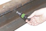 当听到"喀"的声音时表示出力已经到达27kN工具自动泄压(公差25-28kN)活塞的行程可以经由侧面的位置观察泄压时按下泄压阀手柄退回活塞.