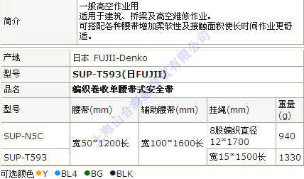 SUP-T593 编织卷收单腰带式安全带(日制)
