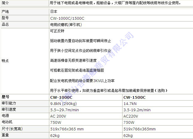 CW-1000C/CW-1500C 电缆牵引用绞磨机