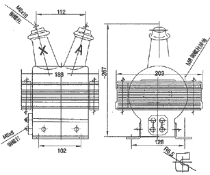 本系列互感器为环氧树脂浇注式绝缘结构,铁心为叠片式,心柱上套装一、二次绕组、一次绕组与二次绕组为同心式,绕在同一个骨架上,整个线圈外部用环氧树脂浇注成形,二次绕组的引线过浇注体上的两个嵌装螺母引出为a.x。一次绕组的引线通过浇注体上的两个高压接线端子引出为A.X。 |