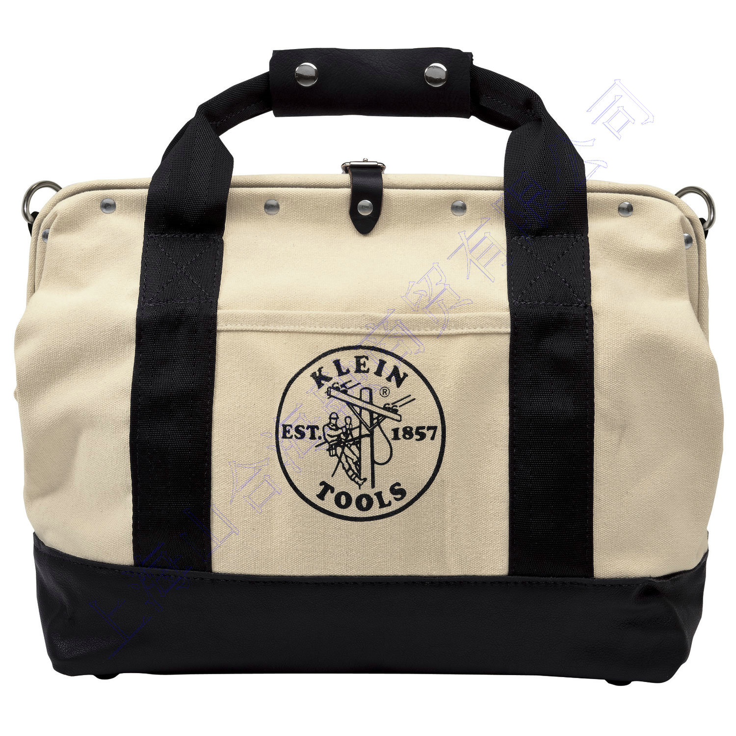 包含:背带安装件,(选配背带,目录号58889),外口袋,皮质包底和3”(76mm)黑皮侧面,2”(51mm)提手,提手包扣,以及背带上的外部工具提手。