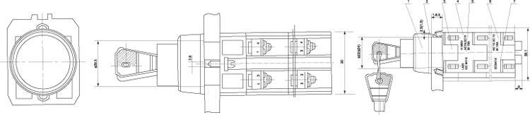 1. 按钮的安装尺寸应符合图1及表1的规定 2. 当有几个按钮并排安装在板上,并排安装孔中心距离a和各排中心线距离b得小于表2和图2的规定,(a与b的位置可互换)。