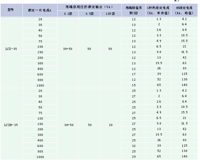 LCZ-35、LCZB-35型电流互感器适用额定频率为50或60HZ,额定电压35KV及以下户内装置的电力系统作电气测量和电气保护用。