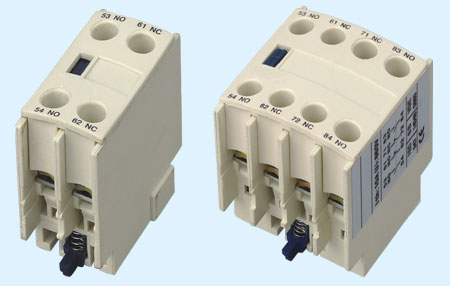 M-DILRC系列接触式继电器顶部,作为扩大触头对数之用,辅助触头组采用滑动摩擦接触功能,BZ电路KK接通,M-DILC系列辅助触头组分8个规格,M——DILC-11、20、13、31、22等。