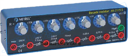 安全的4mm插座用于连接每个电阻链,可以单独进行插拔。它也可以通过旋转开关∝位置的选择,插入电阻链到两个或多个进行单独绝缘组合。
