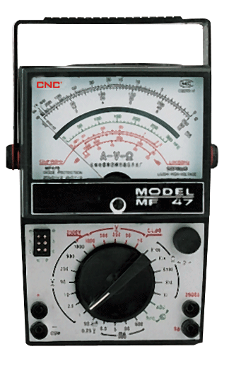 MF47型是一种高灵敏度便携式万用电表,结构新颖,性能优良,测量范围宽广,可测量直流电流、直流电压,交流电压和直流电阻等,具有26个基本量程和电平、电容、电感、晶体管直流参数7个附加参考量程,是量限多分栏细、体积轻巧,性能稳定,读数清晰,使用方便,表中设置了二极管和熔断丝双重保护装置,它是从事无线电、电讯、电视机、音频放大器电子设备的电工测试、工厂、实验室、维修的专业人员及业余爱好者的理想测试仪表。