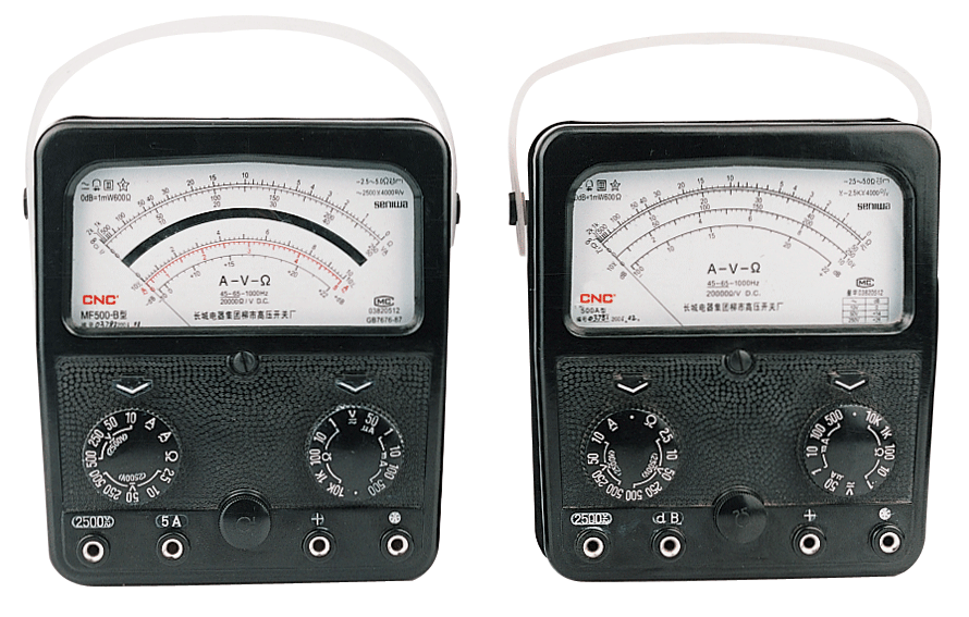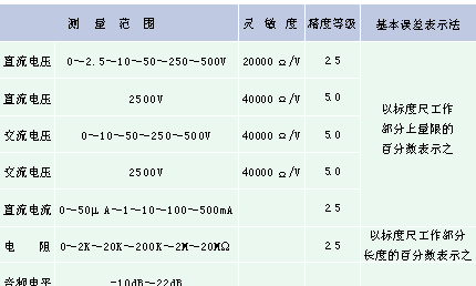 MF500型万用电表是一种高灵敏度,多量限的携带式整流系仪表。该仪表共具有二十四个测量量限,能分别测量交直流电压、直流电流、电阻及音频电平,适宜于无线电、电讯及电工事业单位作一般测量之用。 仪表适合在周围气温为0℃ ~+40℃,相对湿度在85%以下的环境中工作。