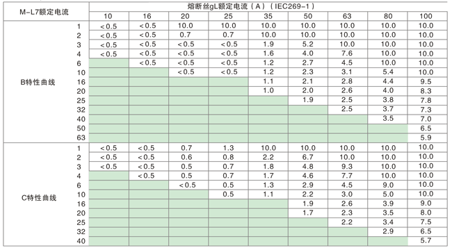 d.直流短路分断能力:Z大 48V(M-L7…,10kA)单极