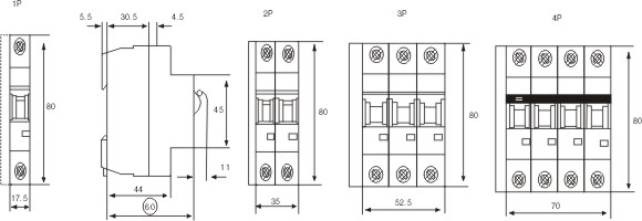■除另外声明,二极开关是两个模数宽,四极是四个模数。