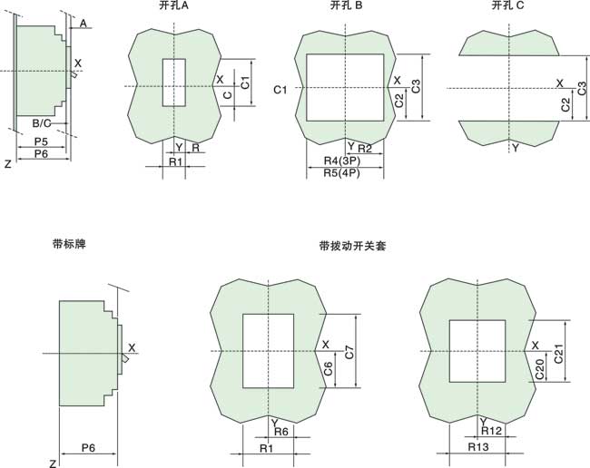 *手柄直接操作无代号;电动操作用“P”表示;转动手柄用“Z”表示