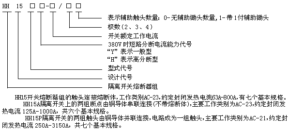 HH15系列开关为全封闭式结构,BZ性能稳定和提高工作KK性。动、静触头都置于以新型电气工程塑料压制的壳体内,从外面看不到。壳体外仅有接线端子及熔断体插座(HH15)或可以看到的串(HH15A)、并(HH15P)连接的铜导体、操动轴套及辅助触头插座等。装配时有严格的工艺控制,因此用户不宜随意拆装。