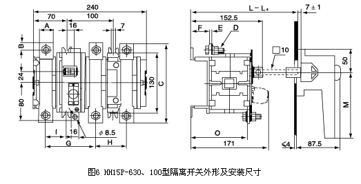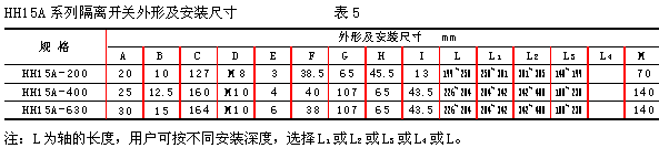| 2、HH15A系列隔离开关外形及安装尺寸见图4 ~ 图5及表5 |