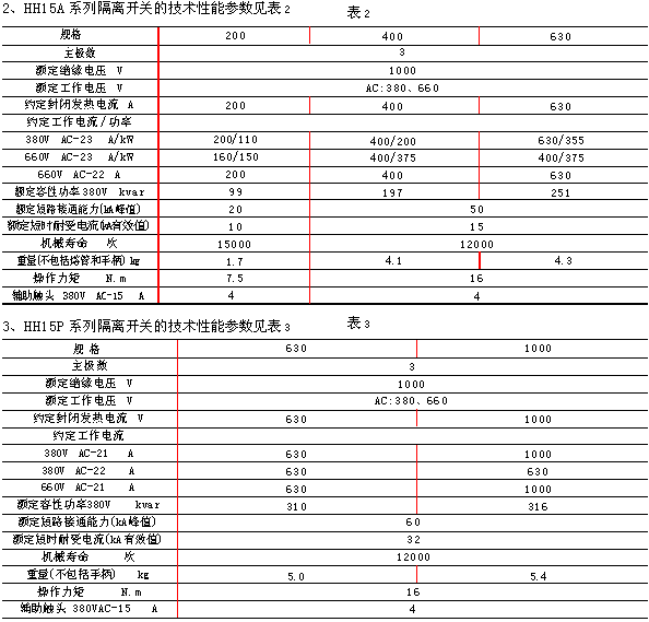| QSA、QA、QP(HH15、HH15P)系列隔离开关、