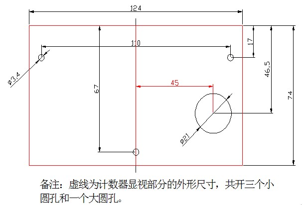 2.柜门安装:计数器的显示部分安装在柜门上,因此要考虑保护器显示部分的信号长度和柜门的开孔位置和尺寸,如下图所示: