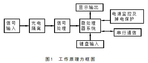 一旦被保护的设备产生过电压,组合式过电压保护器通过增加自身电流泄放过电压能量保护设备,保护器动作电流经高性能信号传感器输入至监测仪。该输入信号经光电隔离、信号整形、输入至微处理器,微处理器一旦接受到该信号,即刻对三路输入信号进行查询,并对查询的结果和相应的时间进行记录和处理。通过键盘输入可对系统的初始时间进行设置;可任意查询记录的结果;必要时可对存储的记录结果进行清零处理。