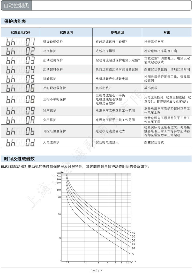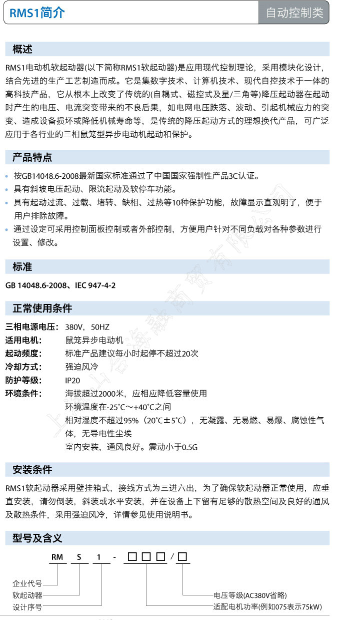 上海人民电器厂RMS1电动机软起动器(以下简称RMS1软起动器)是应用现代控制理论,采用模块化设计,结合先进的生产工艺制造而成。它是集数字技术、计算机技术、现代自控技术于一体的