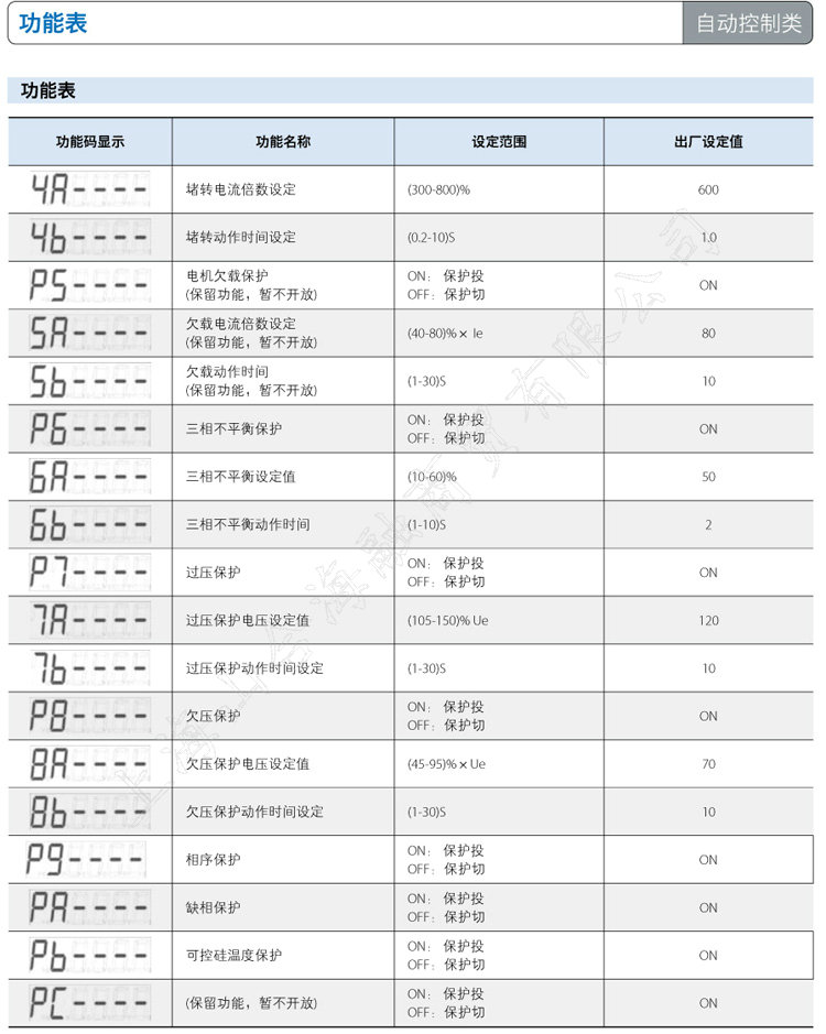 具有起动过流、过载、堵转、缺相、过热等10种保护功能,故障显示直观明了,便于