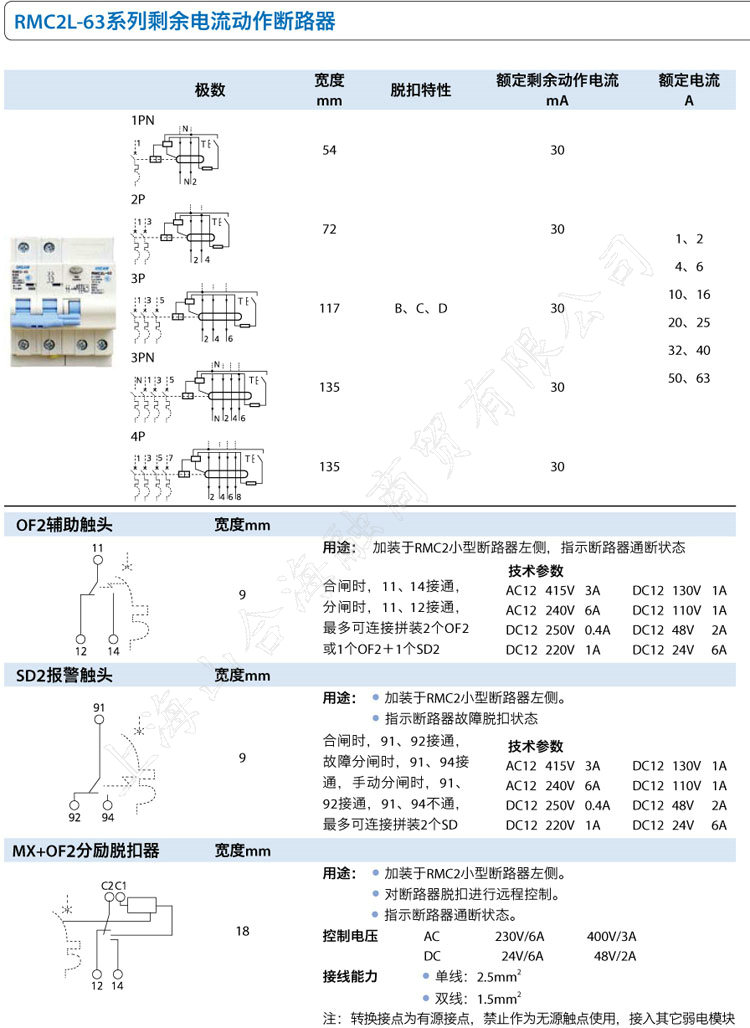 用途: 加装于RMC2小型断路器左侧。