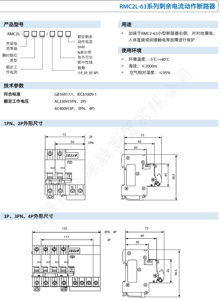 上海人民电器厂RMC2L-63系列剩余电流动作断路器