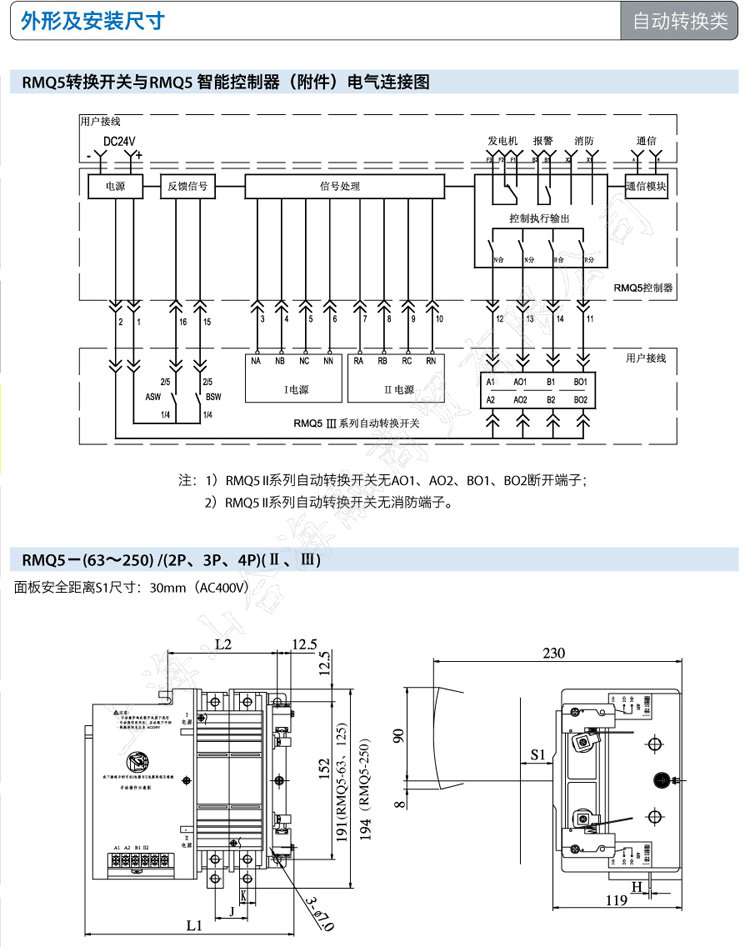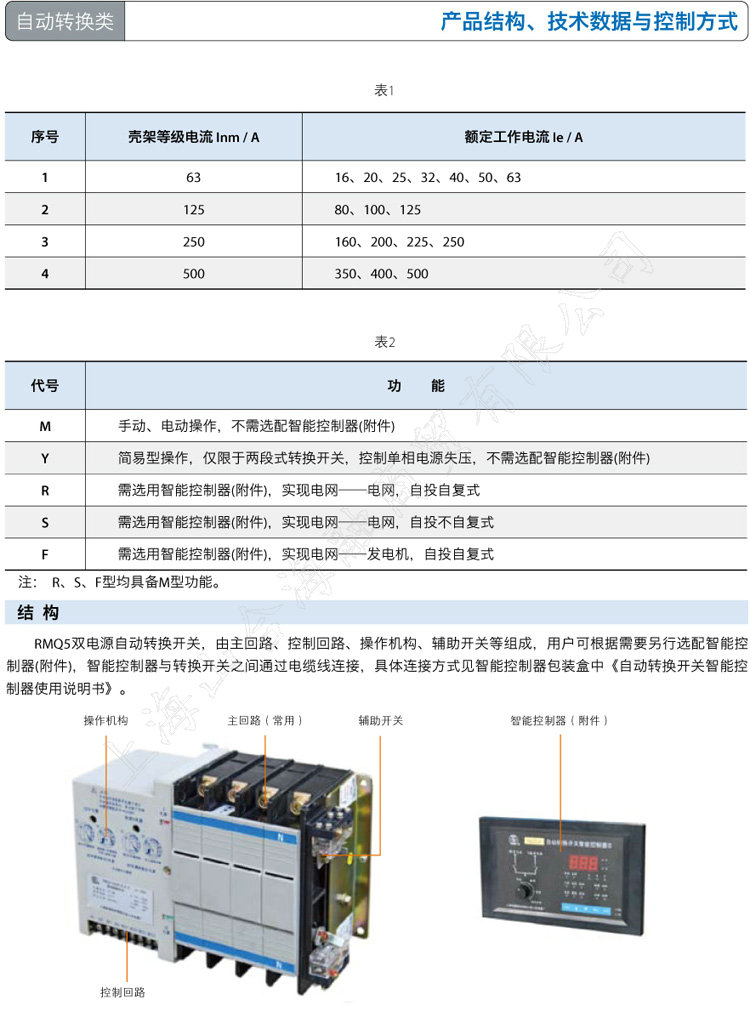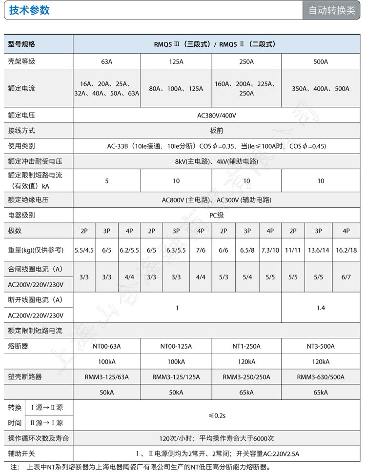 RMQ5系列自动转换开关(以下简称转换开关)属于PC级,主要适用于交流50Hz,