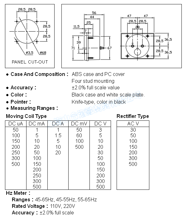 ● 規格 : 45-65Hz, 45-55Hz, 55-65Hz