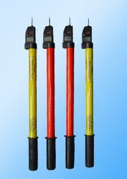 ZGD-1500型+1500V / ZGD-750型+750V 高压直流验电器是GD系列高压交流验电器的派生产品,其指示器与操作杆都应用交流验电器的结构与工艺,所不同之处在于直流验电器操作杆的首节绝缘杆内增设了高压限流元件及接地引下端口。在型号区分上也较交流验电器增设了正、负极性之分。