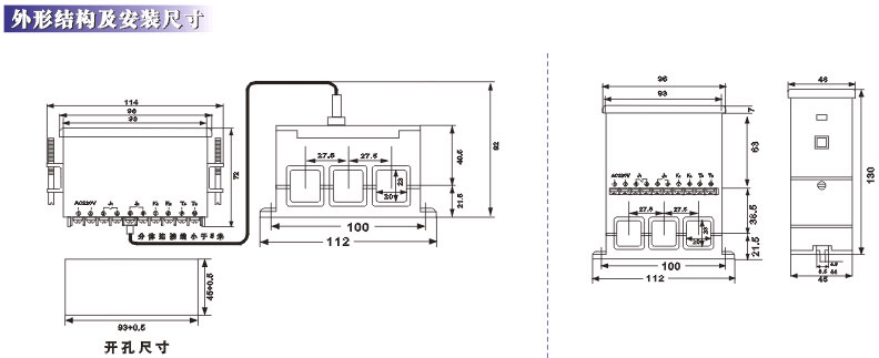 技术能数 触点容量 AC220V/5A AC380V/3A 电寿命≥100000次。 触点特性 触点J1常闭,触点J2常开,若需特制订购生产。 通讯接口 RS485串行数字接口,通信距离≤1200米 工作电压 AC220V±15% AC380V±15% 50Hz±2%其它规格订购生产。 允许误差 ±5% 分体显示 距离小于5m,标准配置为60cm 外形尺寸 112mm×48mm×130mm 通讯协议 支持厂内自行编制、MODBUS、PROFIBUS等通信协议。