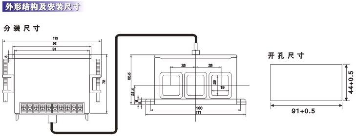 技术参数 触点容量 AC220V/5A AC380V/3A 电寿命≥100000次 触点特性 触点J1常闭,触点J2常开,若需特制订购生产 电流输出 4~20mA电流信号输出。 工作电压 AC220V±15% AC380V±15% 50Hz±2%其它电压规格订购生产 允许误差 ±5% 分体显示 距离小于5m,标准配置60cm 外形尺寸 112mm×48mm×124mm
