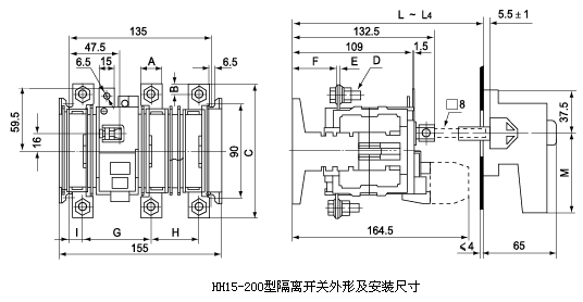 | 2、HH15A系列隔离开关外形及安装尺寸见图4 ~ 图5及表5 |