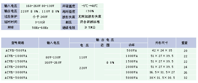 TZ、AVR(CVR)继电器式系列稳压器,它采用双取样、双稳压,时基集成作延时的XJ电子自动控制器。本机具有动作灵敏、定时准确、性能稳定、安全省电、造型美观、结构合理、使用方便等优点,使用于计算机、测试设备、照明系统、工业自动化设备、家用电器、Hi-Fi设备。